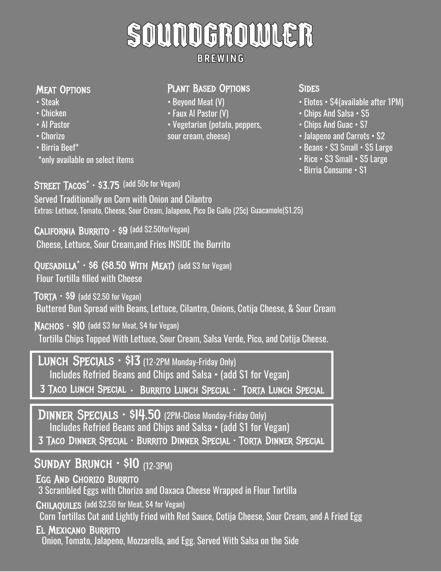 Friendly Reminder: Our kitchen closes one hour before the taproom. We encourage you to place your orders in advance so we can ensure you enjoy your meal with us!